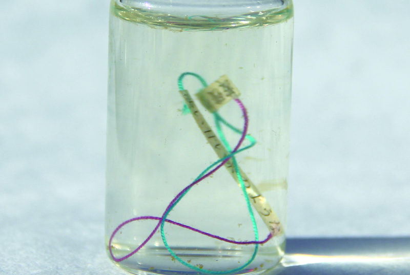 After I took books apart for creation a work of “I Shui”, I started collecting activities of words what I got the impression and flashed across my mind. I combined “color” and “length” as elements using embroidery thread to express image what I feel from words. Preserving in the water causes degradation of letters. And transformations of letters that I can not produce are able to be observed.